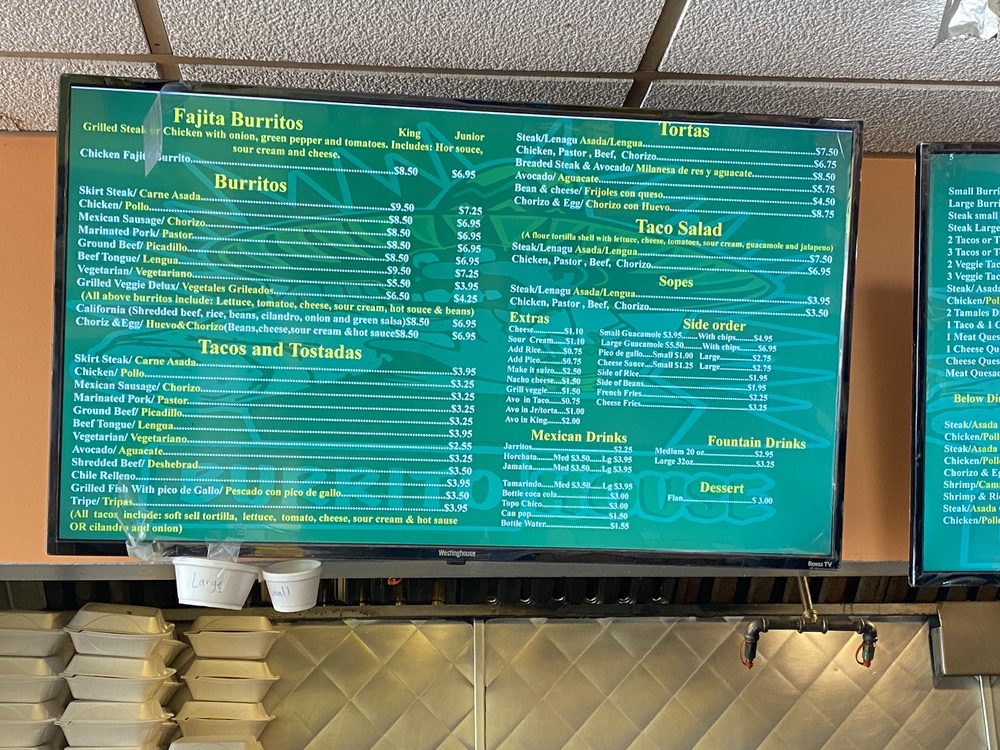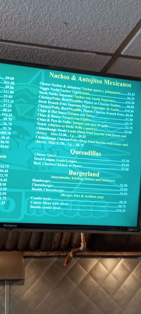 Choice of meat expect lengua or steak. Beans, tomatoes, shredded cheese, nacho cheese, jalapeos, sour cream, guacamole..